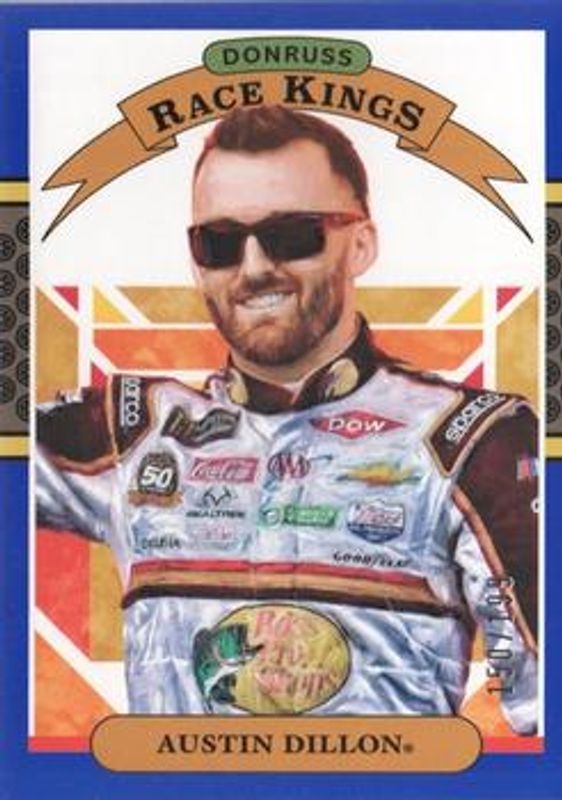The Austin Dillon 2020 Donruss NASCAR #3 Blue /199 card is 1 of 130 Austin Dillon's card variations in the 2020 Donruss NASCAR set being tracked by Sports Card Investor, including #111 Base, #168 Base, #191 Base, #25 Base, and #3 Base.