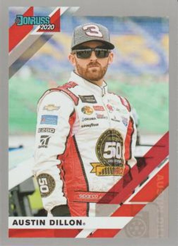 The Austin Dillon 2020 Donruss NASCAR #25 Silver card is 1 of 130 Austin Dillon's card variations in the 2020 Donruss NASCAR set being tracked by Sports Card Investor, including #111 Base, #168 Base, #191 Base, #25 Base, and #3 Base.