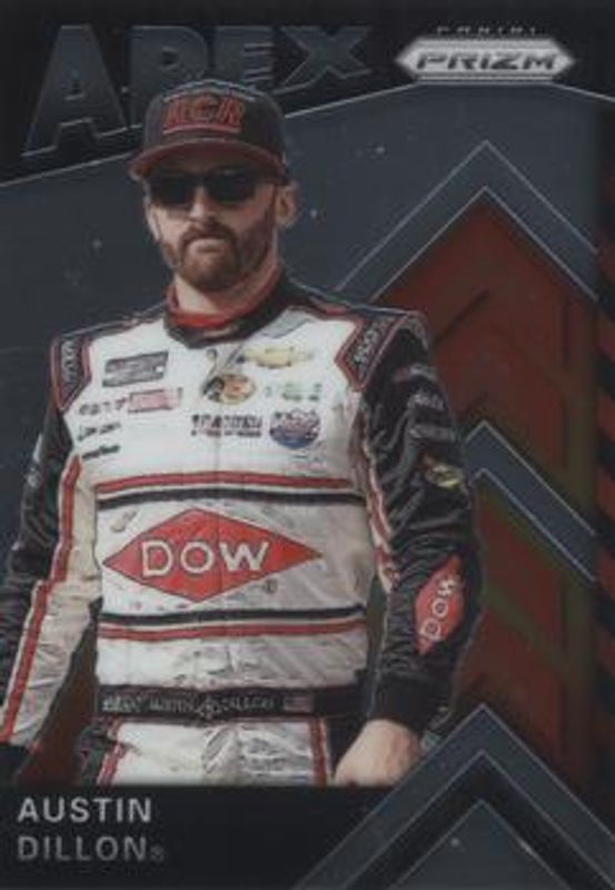 The Austin Dillon 2020 Prizm NASCAR #A3 Apex card is 1 of 71 Austin Dillon's card variations in the 2020 Prizm NASCAR set being tracked by Sports Card Investor, including #12 Base, #68 Base, #68 Blue, #12 Blue, and #12 Blue & Carolina Blue Hyper.