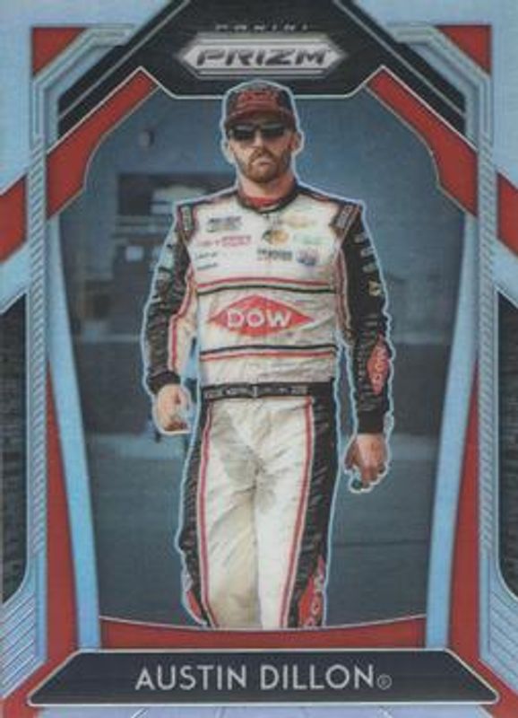 The Austin Dillon 2020 Prizm NASCAR #12 Silver card is 1 of 71 Austin Dillon's card variations in the 2020 Prizm NASCAR set being tracked by Sports Card Investor, including #12 Base, #68 Base, #68 Blue, #12 Blue, and #12 Blue & Carolina Blue Hyper.