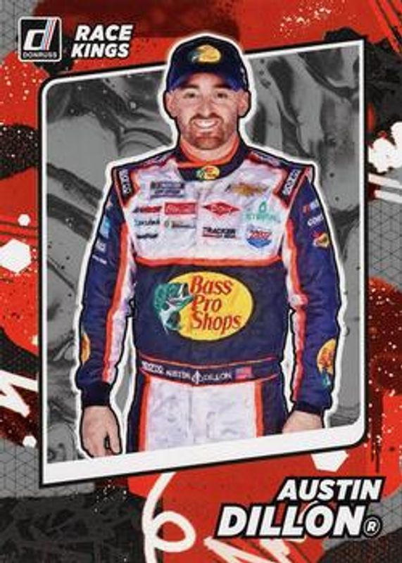 The Austin Dillon 2022 Donruss NASCAR #24 Silver card is 1 of 95 Austin Dillon's card variations in the 2022 Donruss NASCAR set being tracked by Sports Card Investor, including #141 Base, #24 Base, #59 Base, #141 Carolina Blue, and #24 Carolina Blue.