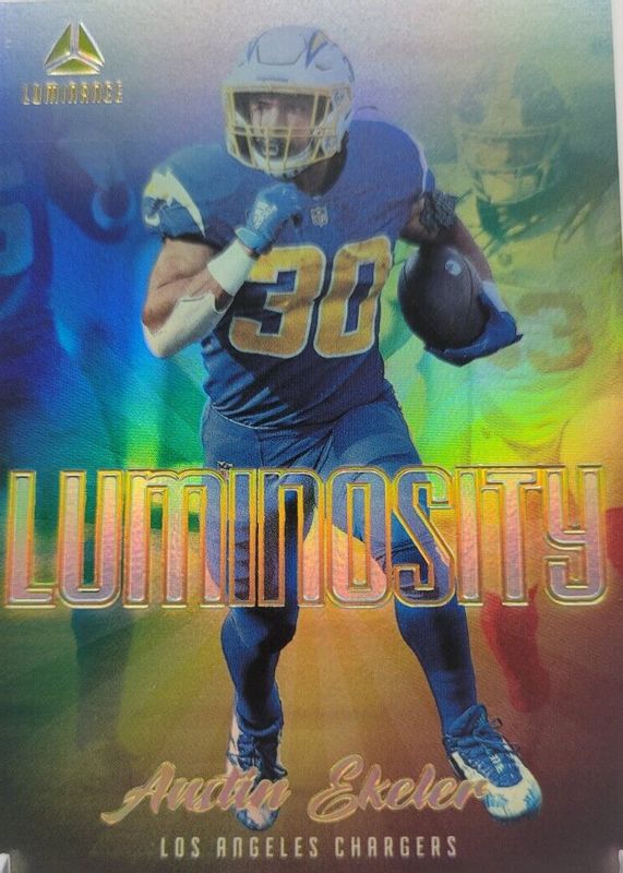 The Austin Ekeler 2022 Luminance #LM-AEK Luminosity /(SSP) card in Raw condition has not changed in price in the last 30 days and was last sold for $20.00 .