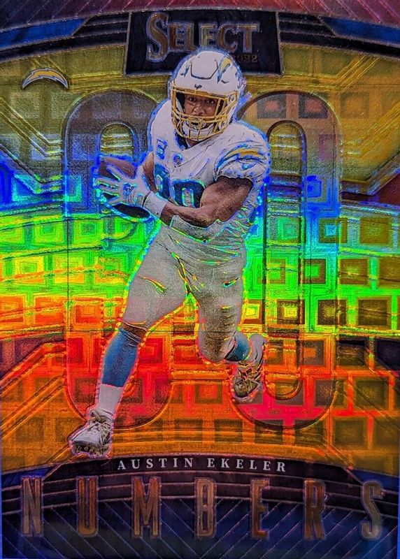 This card is 1 of 15 Austin Ekeler's card variations in the 2022 Select set being tracked by Sports Card Investor, including Select Numbers - Zebra /(SSP), Snapshots - Zebra /(SSP), Visionary /(SSP), Select Numbers - Tie-Dye /25, and Snapshots - Tie-Dye /25.