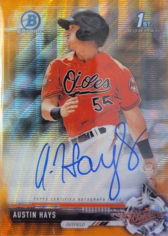 Auctions Ending Soon for Austin Hays 2017 Bowman Chrome #CPA-AH Prospect Auto - Orange Wave Refractor /25 (1st) RAW