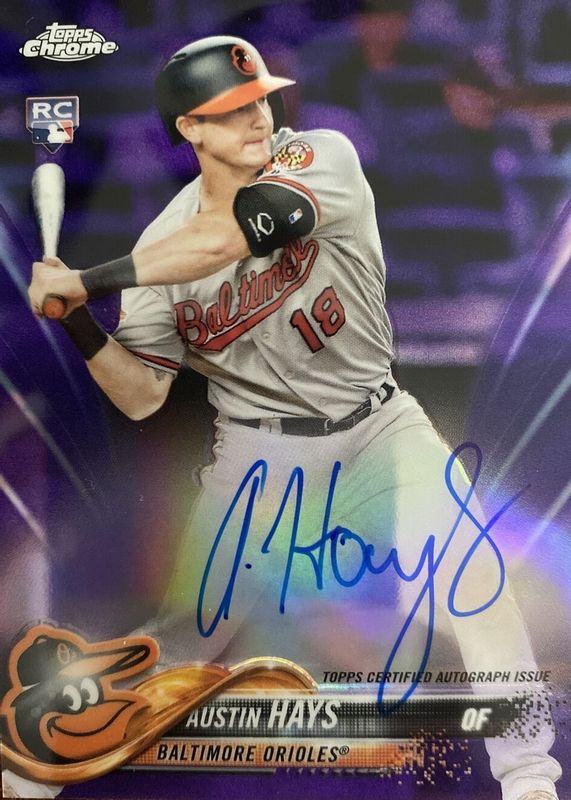 2018 Topps Chrome purple Refractor Auto Rookie Austin Hays RA-AH RC Orioles /250