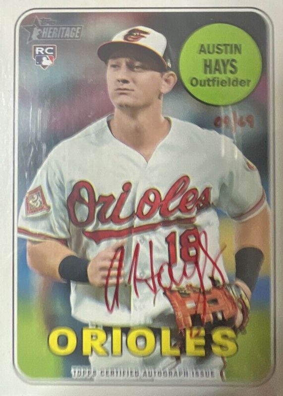 2018 Topps Heritage AUSTIN HAYS Real One Auto Red Ink /69 Rookie Baltimore SSP