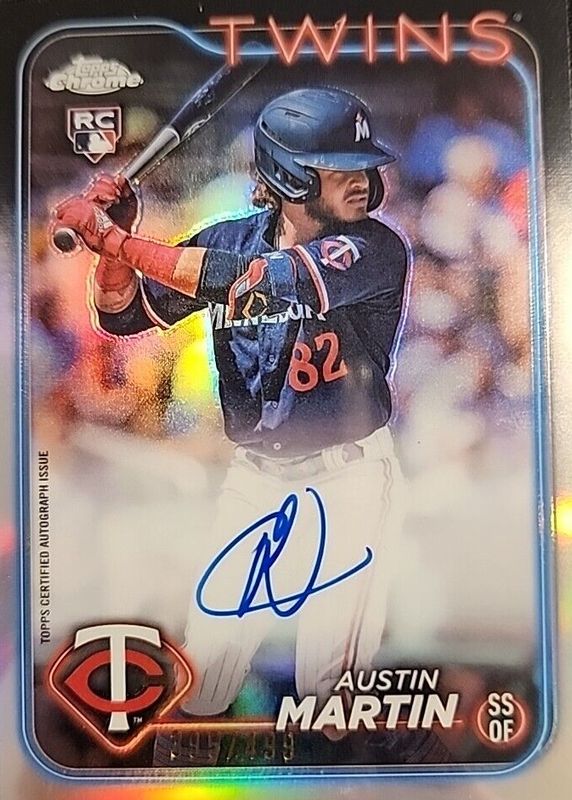 Austin Martin's Baseball cards are available in at least 14 sets. Austin Martin's biggest 7-day price movers are 2024 Topps Chrome Update #RA-AM Autographs - Aqua Wave Refractor /199, 2024 Topps Chrome Update #RA-AM Autographs - Refractor /499, and 2021 Bowman #CPA-AM Chrome Prospect Auto - Blue Refractor /150 (1st).
