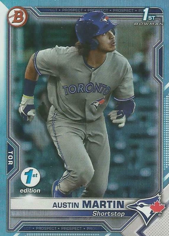 This card is 1 of 2 Austin Martin's card variations in the 2021 Bowman 1st Edition set being tracked by Sports Card Investor, including Base (1st).