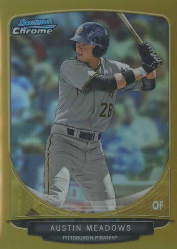 The Austin Meadows 2013 Bowman Draft #BDPP5 Chrome Draft Picks - Gold Refractor /50 card in Raw condition has not changed in price in the last 30 days and was last sold for $30.00 .