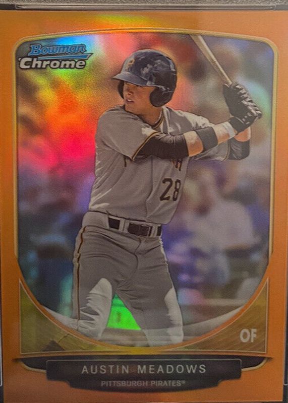 The Austin Meadows 2013 Bowman Draft #BDPP5 Chrome Draft Picks - Orange Refractor /25 card in Raw condition has not changed in price in the last 30 days and was last sold for $4.99 .