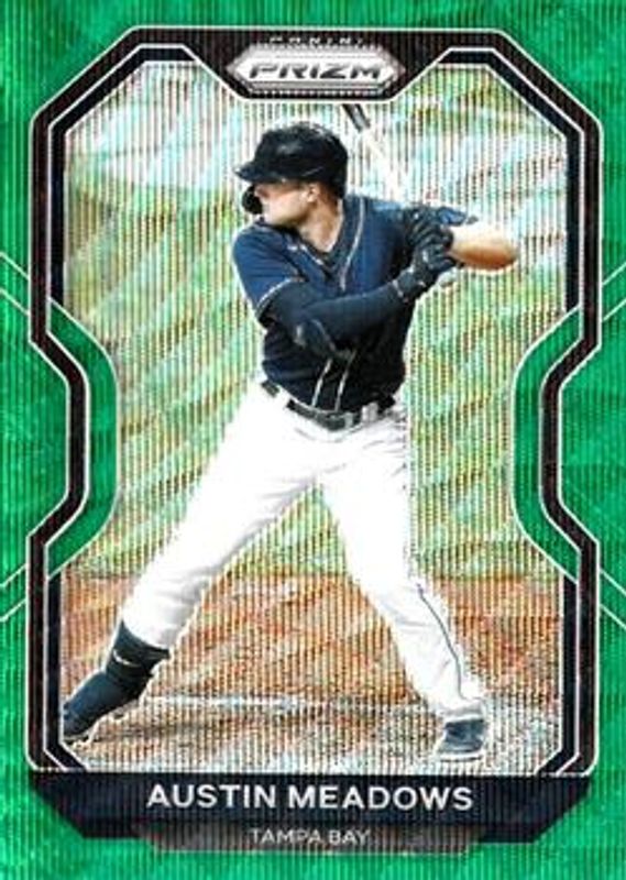 The Austin Meadows 2021 Prizm #38 Green Wave card is 1 of 43 Austin Meadows' card variations in the 2021 Prizm set being tracked by Sports Card Investor, including Base, Blue, Blue Velocity, Carolina Blue, and Cosmic Haze.