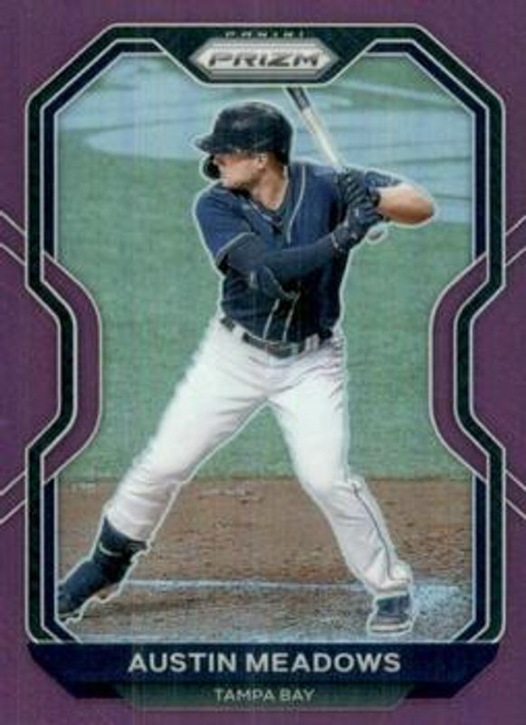 The Austin Meadows 2021 Prizm #38 Purple card is 1 of 43 Austin Meadows' card variations in the 2021 Prizm set being tracked by Sports Card Investor, including Base, Blue, Blue Velocity, Carolina Blue, and Cosmic Haze.