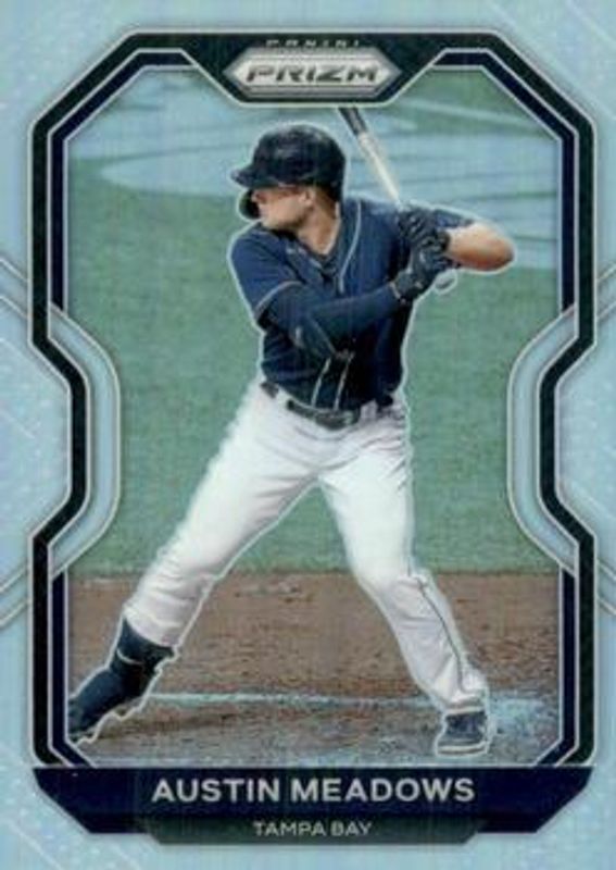 The Austin Meadows 2021 Prizm #38 Silver card is 1 of 43 Austin Meadows' card variations in the 2021 Prizm set being tracked by Sports Card Investor, including Base, Blue, Blue Velocity, Carolina Blue, and Cosmic Haze.