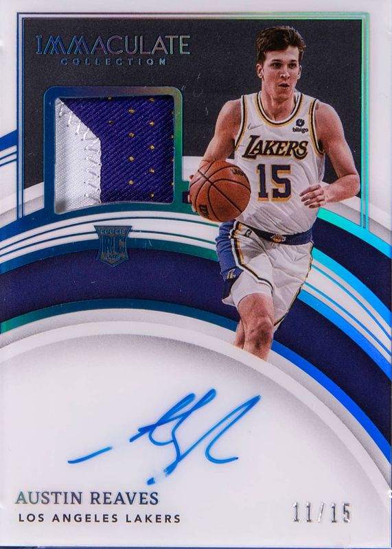 This card is 1 of 10 Austin Reaves' card variations in the 2021 Immaculate set being tracked by Sports Card Investor, including Premium Patch Autographs (/50), Premium Patch Autographs - Gold (/10), Premium Patch Autographs - Red (/25), Rookie Patch Auto /99, and Rookie Patch Auto - Red /49.