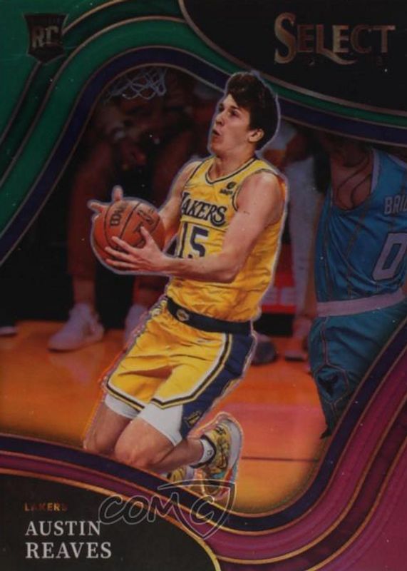 2021-22 Panini Select Austin Reaves Rookie Courtside Green White Purple Lakers