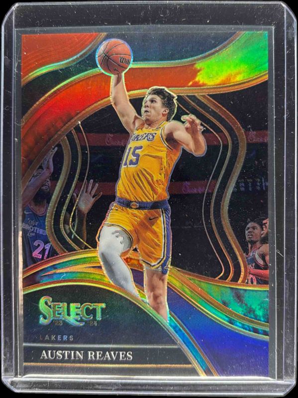 The Austin Reaves 2023 Select #252 Courtside Tie-Dye /25 card is 1 of 196 Austin Reaves' card variations in the 2023 Select set being tracked by Sports Card Investor, including Concourse, Courtside, Mezzanine, Premier Level, and Concourse Blue Cracked Ice.