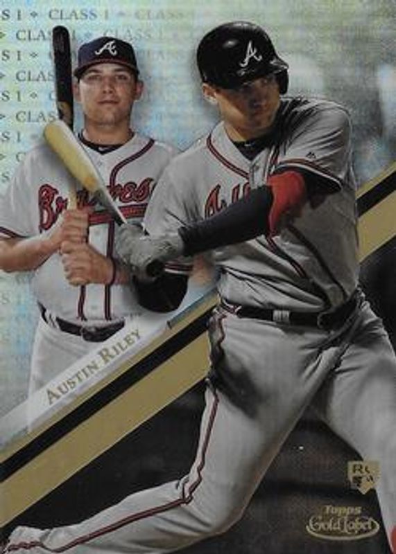 The Austin Riley 2019 Topps Gold Label #60 Base Rookie card is 1 of 17 Austin Riley's card variations in the 2019 Topps Gold Label set being tracked by Sports Card Investor, including Class 2, Class 3, Class 1 Black, Class 2 Black, and Class 3 Black.