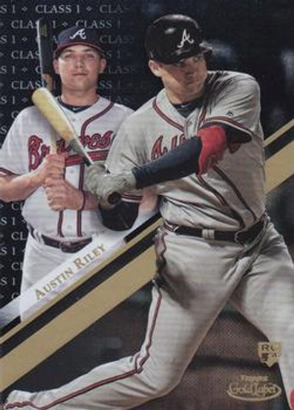 The Austin Riley 2019 Topps Gold Label #60 Class 1 Black Rookie card is 1 of 17 Austin Riley's card variations in the 2019 Topps Gold Label set being tracked by Sports Card Investor, including Base, Class 2, Class 3, Class 2 Black, and Class 3 Black.