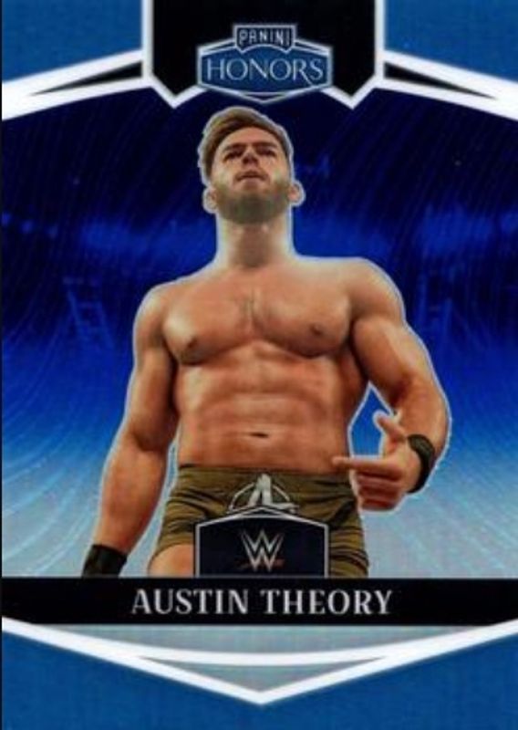 The Austin Theory 2023 Chronicles WWE #330 Blue /99 card is 1 of 70 Austin Theory's card variations in the 2023 Chronicles WWE set being tracked by Sports Card Investor, including #64 Base, #105 Base, #201 Base, #289 Base, and #330 Base.