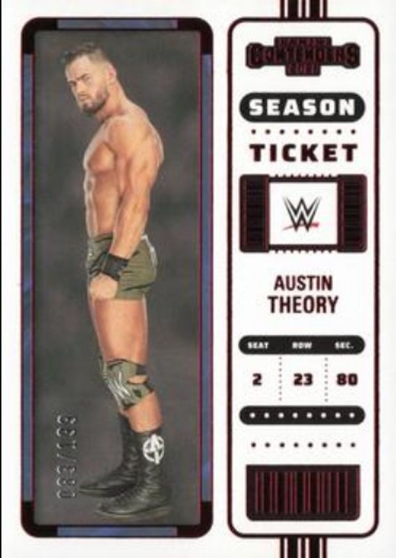 The Austin Theory 2023 Chronicles WWE #105 Red /199 card is 1 of 70 Austin Theory's card variations in the 2023 Chronicles WWE set being tracked by Sports Card Investor, including #64 Base, #105 Base, #201 Base, #289 Base, and #330 Base.