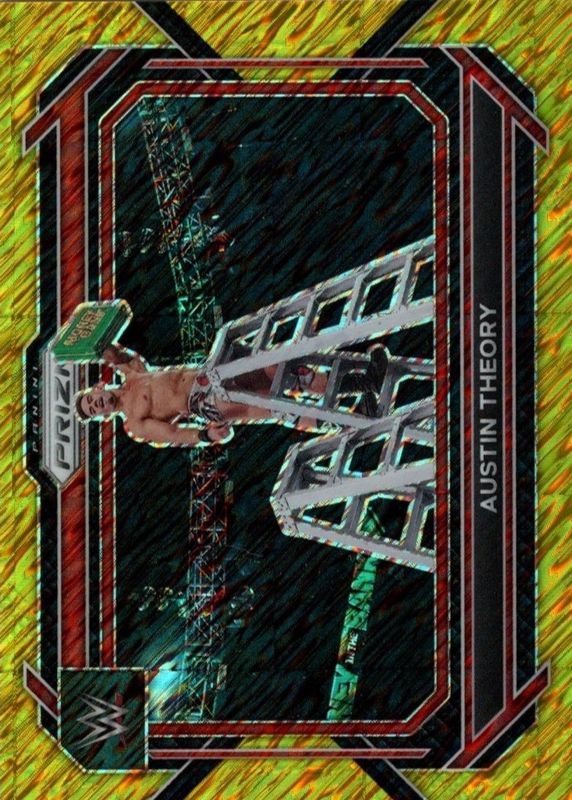 The Austin Theory 2023 Prizm WWE #96 Gold Shimmer /5 card in Raw condition has not changed in price in the last 30 days and was last sold for $100.00 .