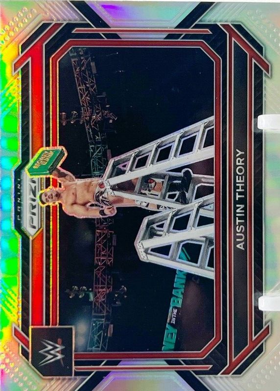 2023 Panini Prizm WWE Silver #96 Austin Theory Raw Money In The Bank Parallel