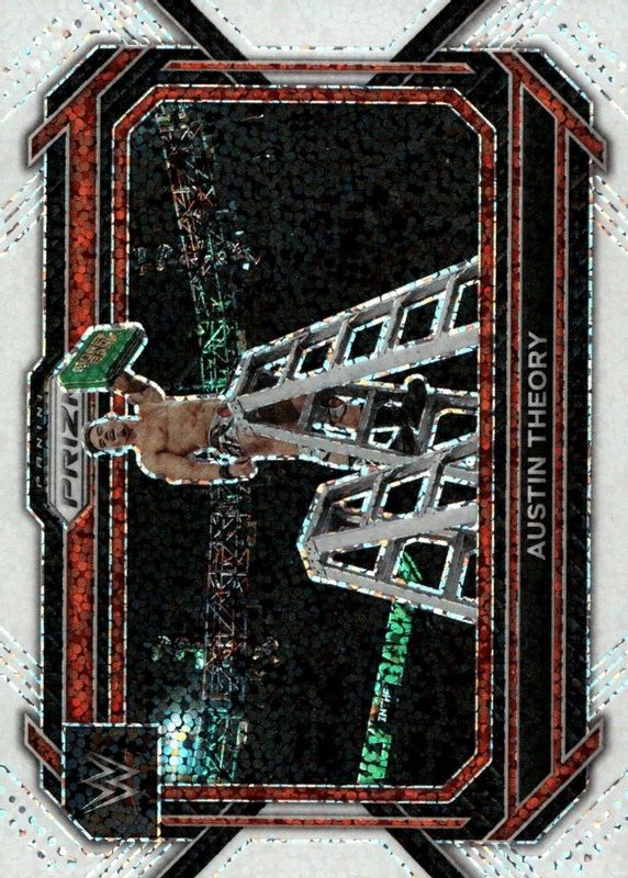 This card is 1 of 19 Austin Theory's card variations in the 2023 Prizm WWE set being tracked by Sports Card Investor, including Silver, Under Card, Red /299, Blue /199, and Premium Box Set /199.