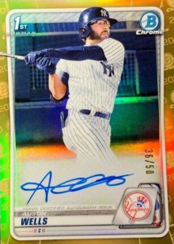 2020 Bowman Chrome Draft Austin Wells #CDA-AWE Gold 1st Bowman RC Auto /50