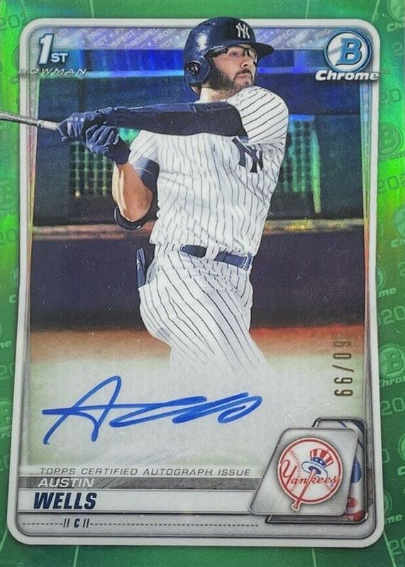 2020 Bowman Draft Chrome AUSTIN WELLS GREEN AUTO 1ST ROOKIE RC SP /99 Yankees