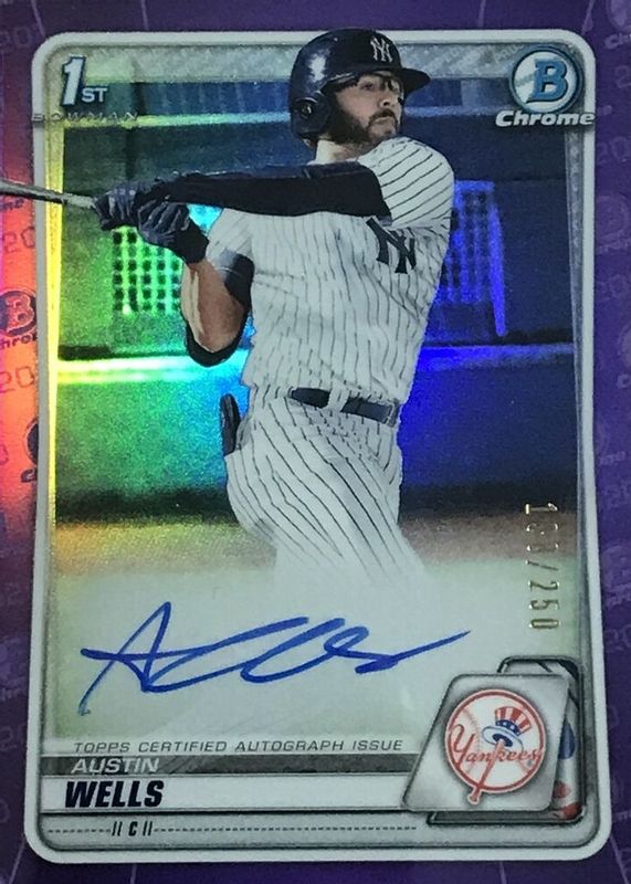 2020 Bowman Draft Chrome Austin Wells Rookie Purple Refractor Auto /250 #CDA-AWE