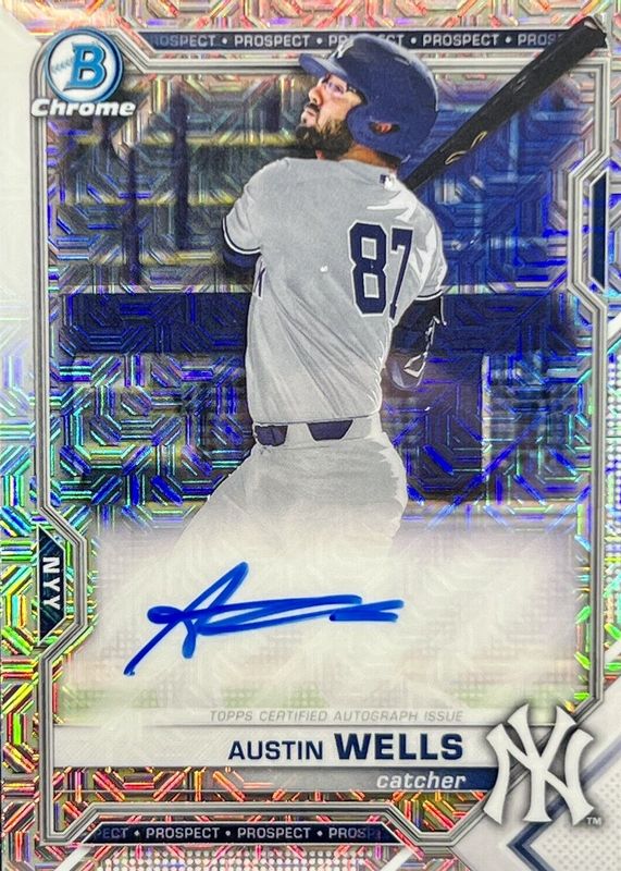 Best Prices Available For Sale of Austin Wells 2021 Bowman Mega Box #BMA-AW Chrome Prospect Auto - Mojo Refractor