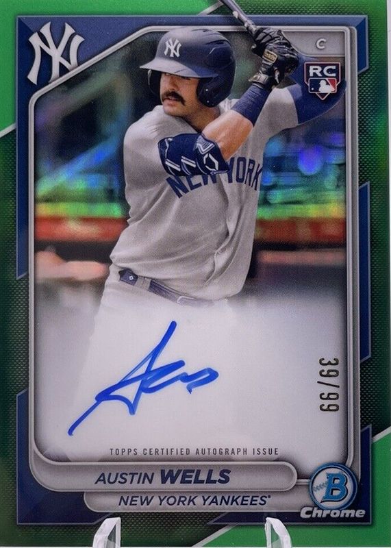 2024 Bowman Chrome Austin Wells Green Refractor Rookie RC Auto /99 #CRA-AW