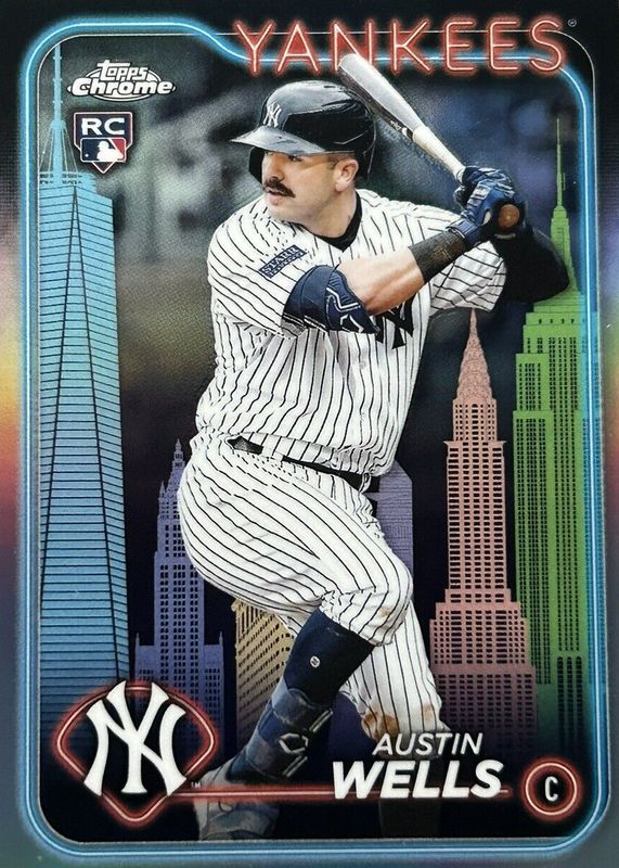 This card is 1 of 67 Austin Wells' card variations in the 2024 Topps Chrome set being tracked by Sports Card Investor, including Base, Negative Refractor, Pink Refractor, Prism Refractor, and RayWave Refractor.