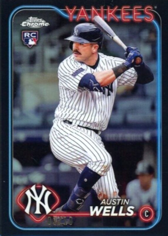 This card is 1 of 67 Austin Wells' card variations in the 2024 Topps Chrome set being tracked by Sports Card Investor, including Base, Negative Refractor, Pink Refractor, Prism Refractor, and RayWave Refractor.