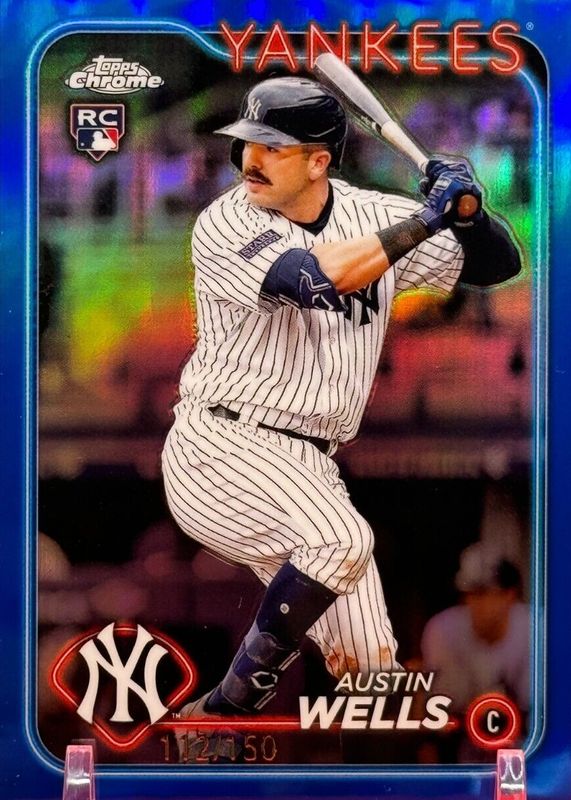 Austin Wells 2024 Topps Chrome L/E #281 Blue Ref /150 RC Yankees