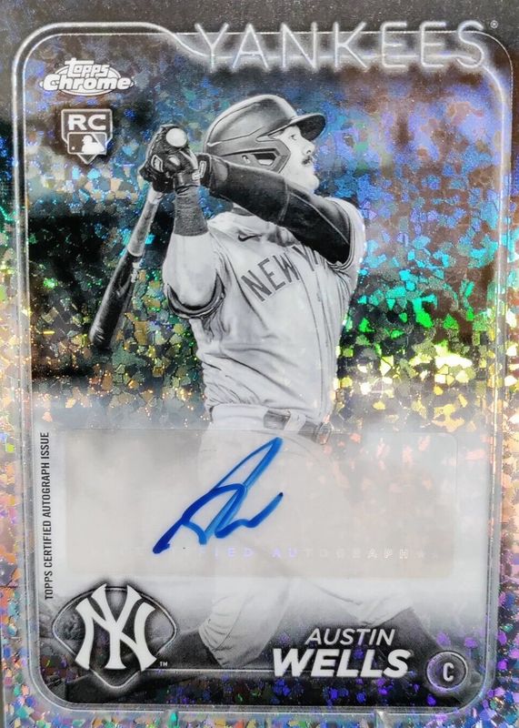 Auctions Ending Soon for Austin Wells 2024 Topps Chrome Update #AC-AWE Autographs - Black & White Mini-Diamond Refractor Rookie RAW