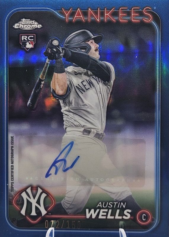 2024 TOPPS CHROME UPDATE AUSTIN WELLS BLUE REFRACTOR RC AUTO /150 YANKEES CA
