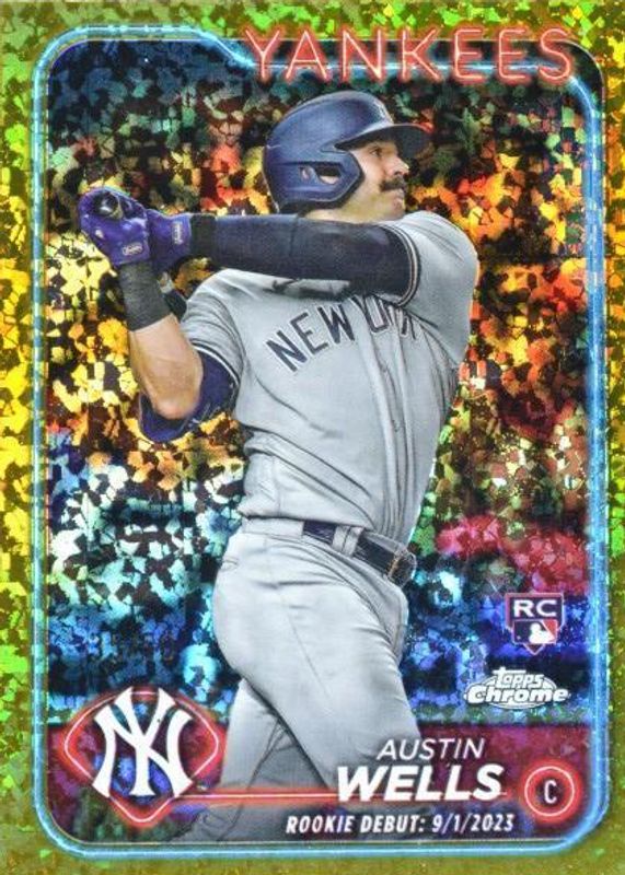 Best Prices Available For Sale of Austin Wells 2024 Topps Chrome Update #USC197 Rookie Debut - Gold Mini-Diamond Refractor /50