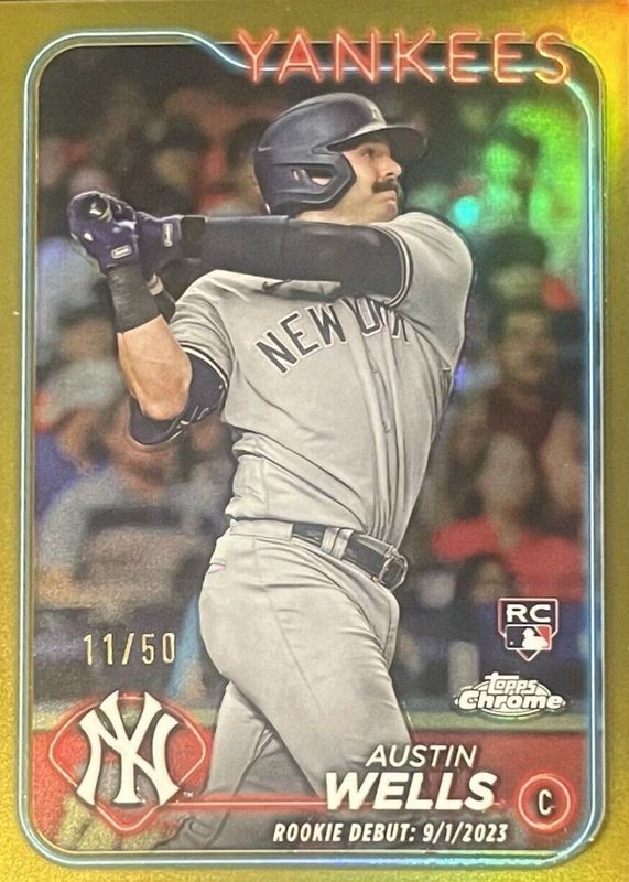 2024 Topps Chrome Update Austin Wells Rookie Debut Gold Refractor RC #USC197 /50