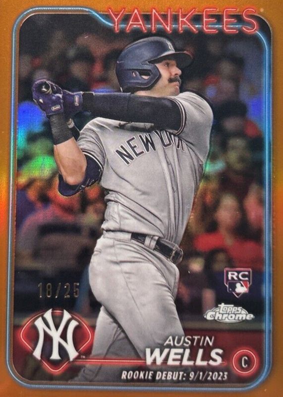 🔥2024 Topps Chrome Update Orange 18/25 #USC197 Austin Wells RC NY Yankees🔥