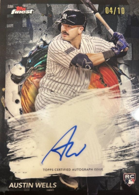 2024 Topps Finest Baseball Austin Wells Rookie Black Refractor Auto 6/10 RC