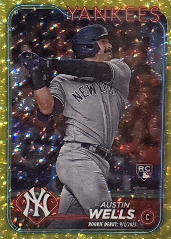 The Austin Wells 2024 Topps Update #US325 Rookie Debut - Yellow Crackle Foilboard /50 card in Raw condition has not changed in price in the last 30 days and was last sold for $17.99 .