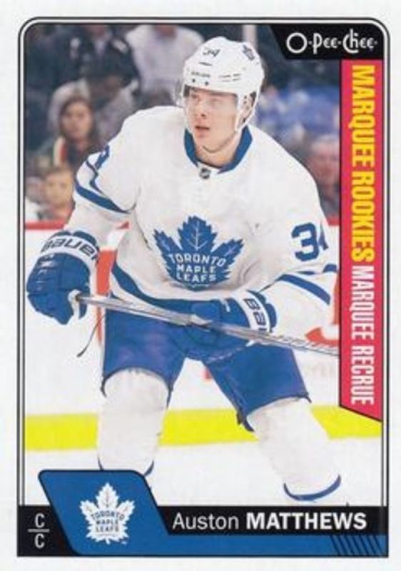 The Auston Matthews 2016 Upper Deck #694 2016 O-Pee-Chee Update Rookie card is 1 of 45 Auston Matthews' card variations in the 2016 Upper Deck set being tracked by Sports Card Investor, including Young Guns Base, Young Guns Canvas, Young Guns - Clear Cut, Young Guns - Gold Rainbow Foil, and Young Guns - Jumbo.