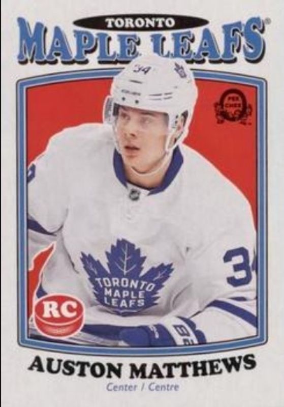 The Auston Matthews 2016 Upper Deck #694 2016 O-Pee-Chee Update Retro Rookie card is 1 of 45 Auston Matthews' card variations in the 2016 Upper Deck set being tracked by Sports Card Investor, including Young Guns Base, Young Guns Canvas, Young Guns - Clear Cut, Young Guns - Gold Rainbow Foil, and Young Guns - Jumbo.