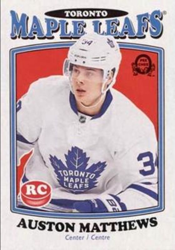 The Auston Matthews 2016 Upper Deck 2016 O-Pee-Chee Update Retro Blank Back Rookie card is 1 of 45 Auston Matthews' card variations in the 2016 Upper Deck set being tracked by Sports Card Investor, including Young Guns Base, Young Guns Canvas, Young Guns - Clear Cut, Young Guns - Gold Rainbow Foil, and Young Guns - Jumbo.