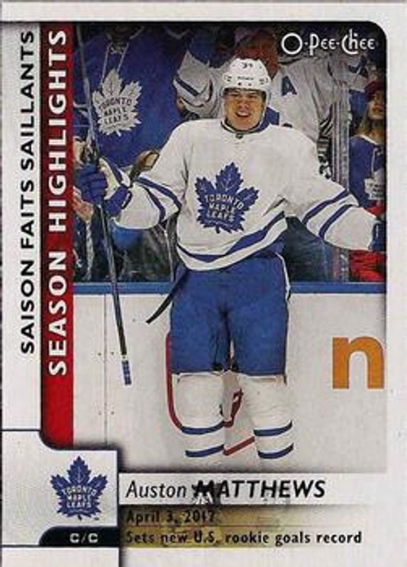 Auston Matthews 2017 O-Pee-Chee #554 Base RAW Price Guide