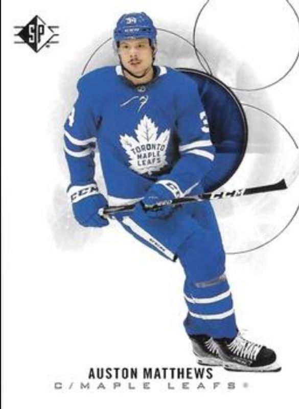 The Auston Matthews 2020 SP #58 Base /2299 card is 1 of 14 Auston Matthews' card variations in the 2020 SP set being tracked by Sports Card Investor, including Blue, Authentic Profiles - Blue, Authentic Profiles Jersey, Authentic Profiles - Pyrotechnic Gold, and Authentic Profiles Signatures.