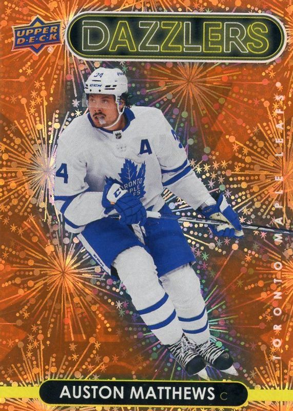 2021-22 UPPER DECK Series 2 AUSTON MATTHEWS Dazzlers Orange Parallel Insert!