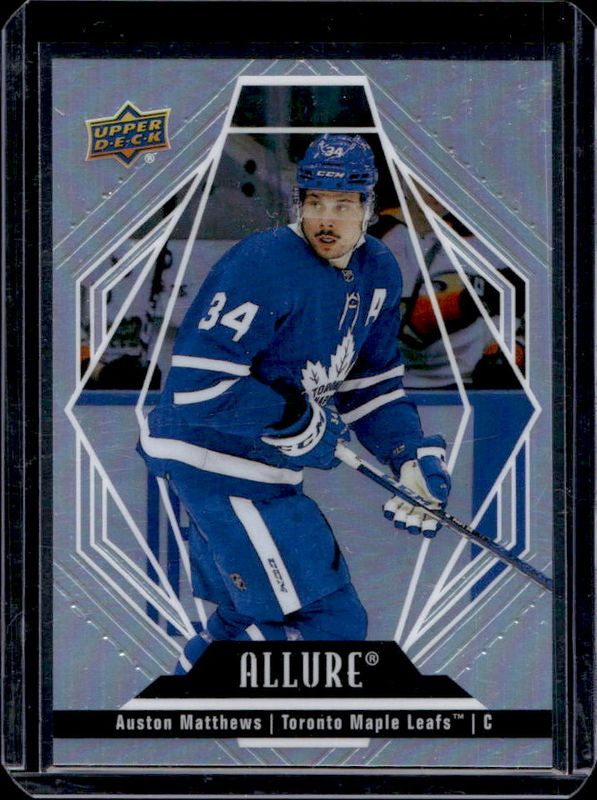 The Auston Matthews 2022 Upper Deck Allure #66 Photo Variations card is 1 of 33 Auston Matthews' card variations in the 2022 Upper Deck Allure set being tracked by Sports Card Investor, including Base, Black Rainbow, Glitter Bomb, Orange Slice, and Pink Leopard.