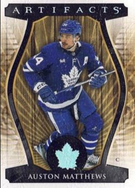 The Auston Matthews 2023 Upper Deck Artifacts #135 Wood card is 1 of 44 Auston Matthews' card variations in the 2023 Upper Deck Artifacts set being tracked by Sports Card Investor, including Base /999, Leather, Plexi, Turquoise, and Ruby /499.